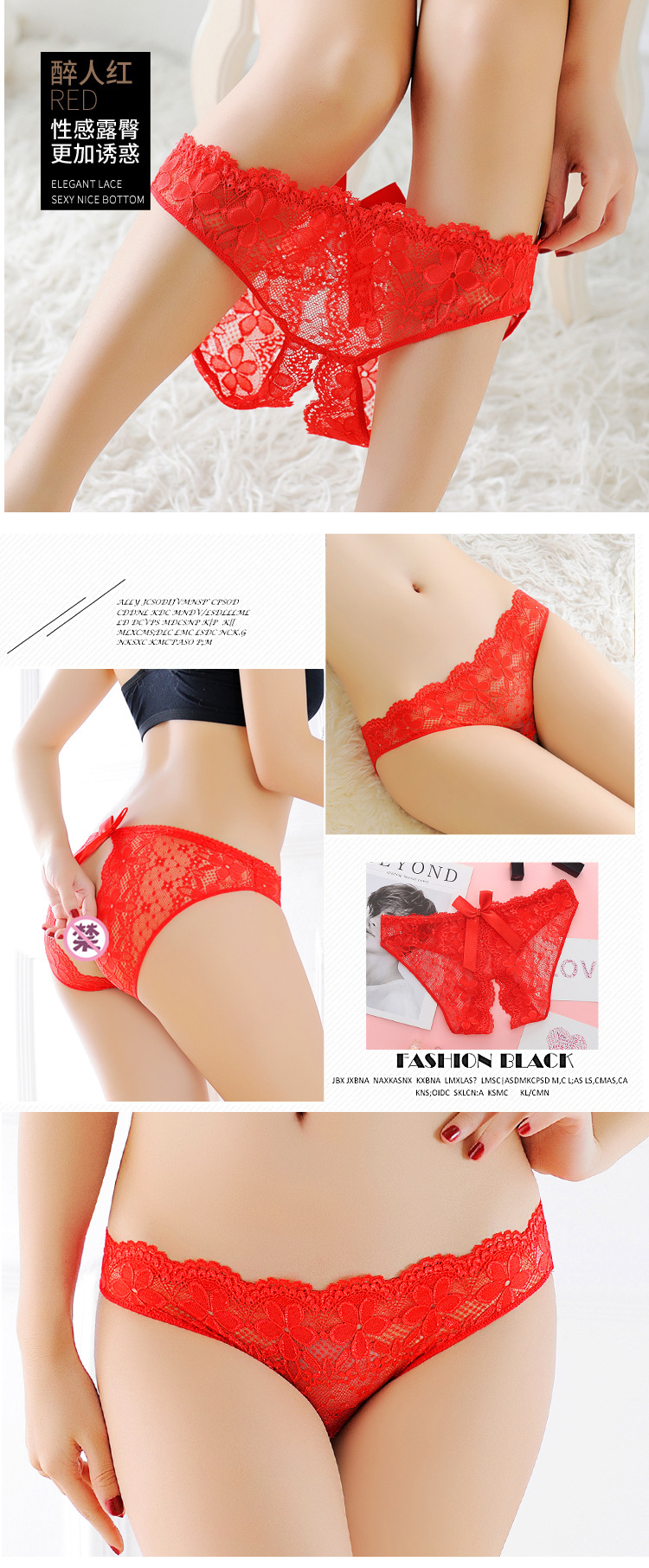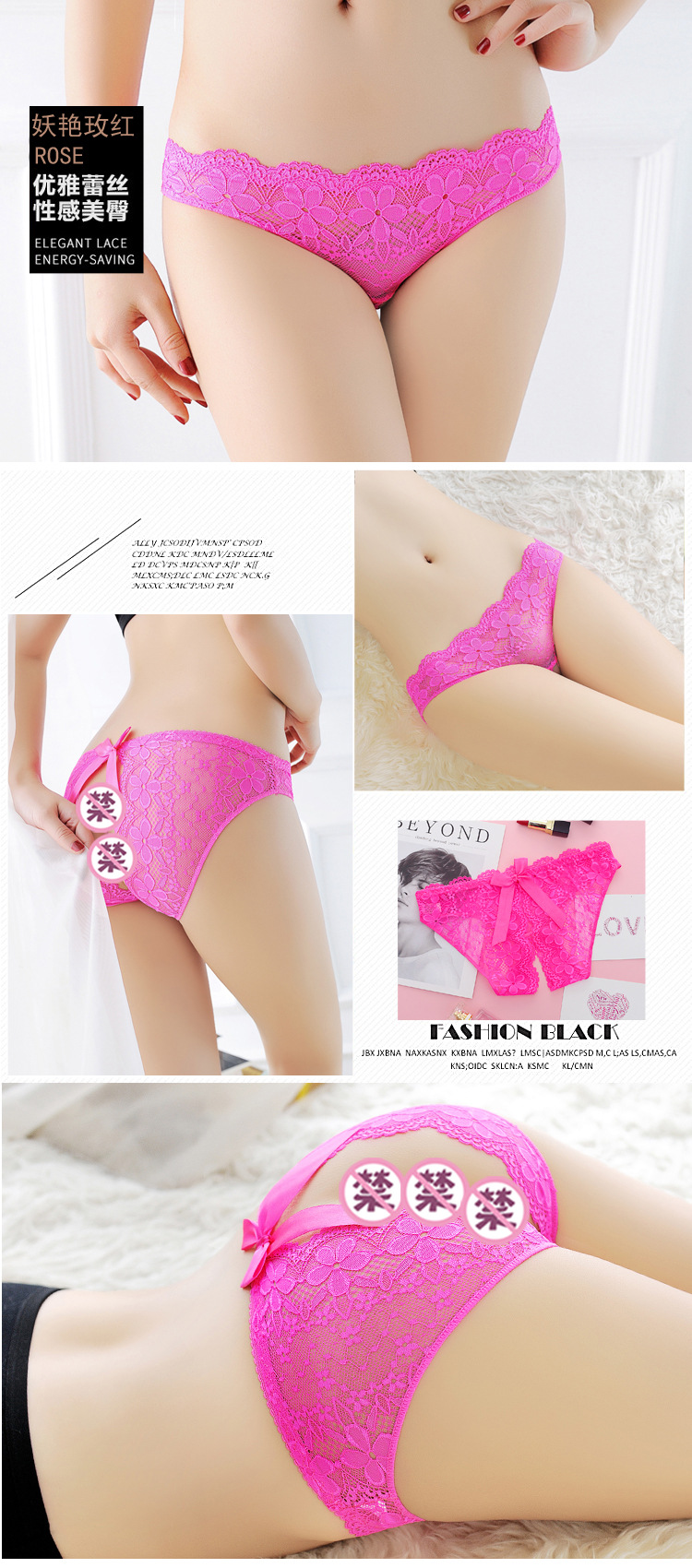 Transparent Lace Sexy Open Crotch Panties/透明蕾丝情趣开裆内裤