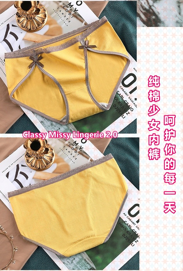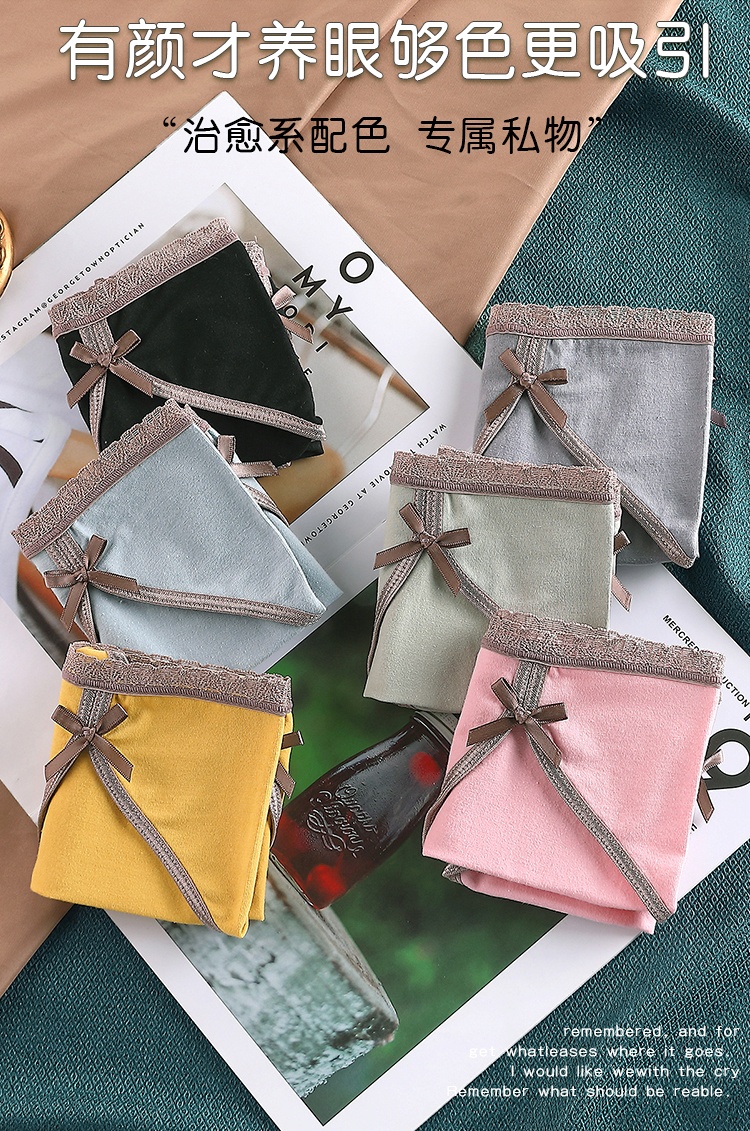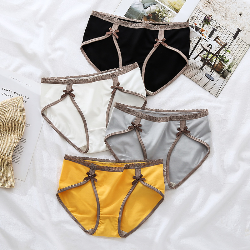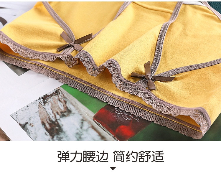 – 中腰无痕全棉甜美蕾丝边蝴蝶结内裤